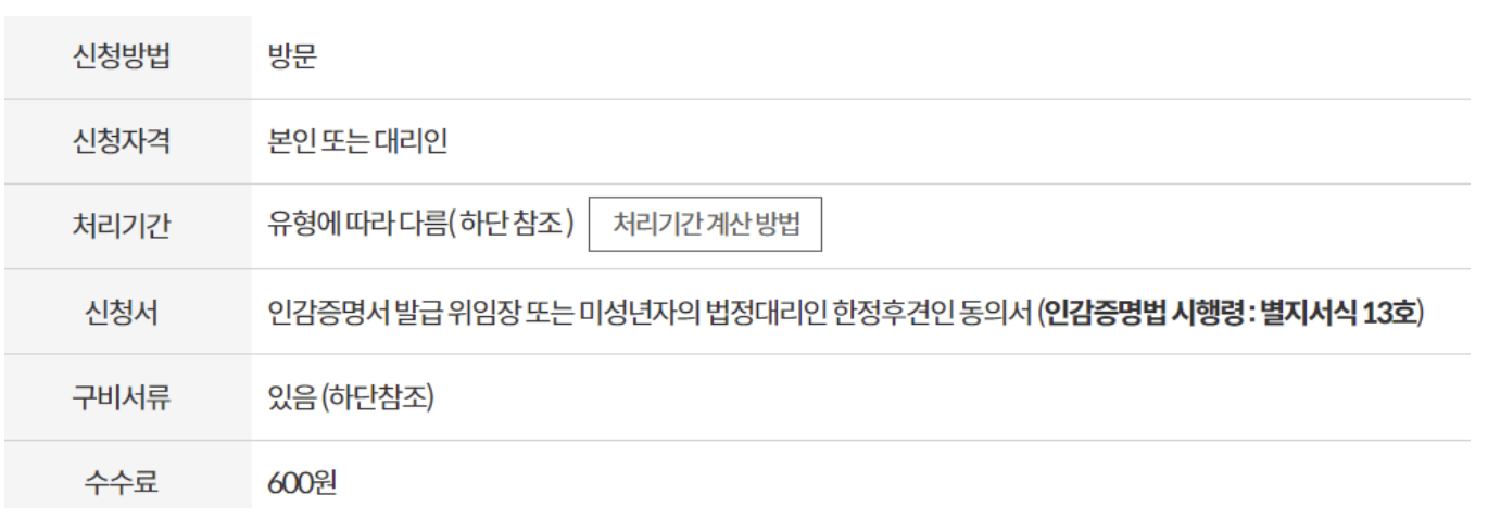 - 처리기간: 즉시 발급
