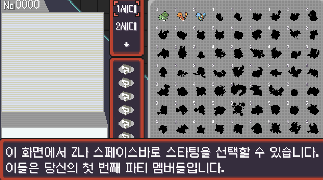 - 체육관 관장 방문과 봉인을 해제하는 모험 요소를 제외하고 포켓몬 배틀만으로 진행됩니다.